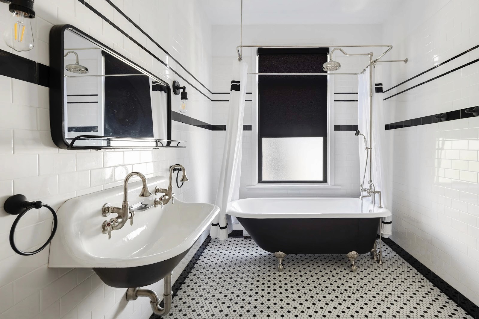 Featuring Bold Black and White Bathroom with Classic Touches, constructed by 2MO.